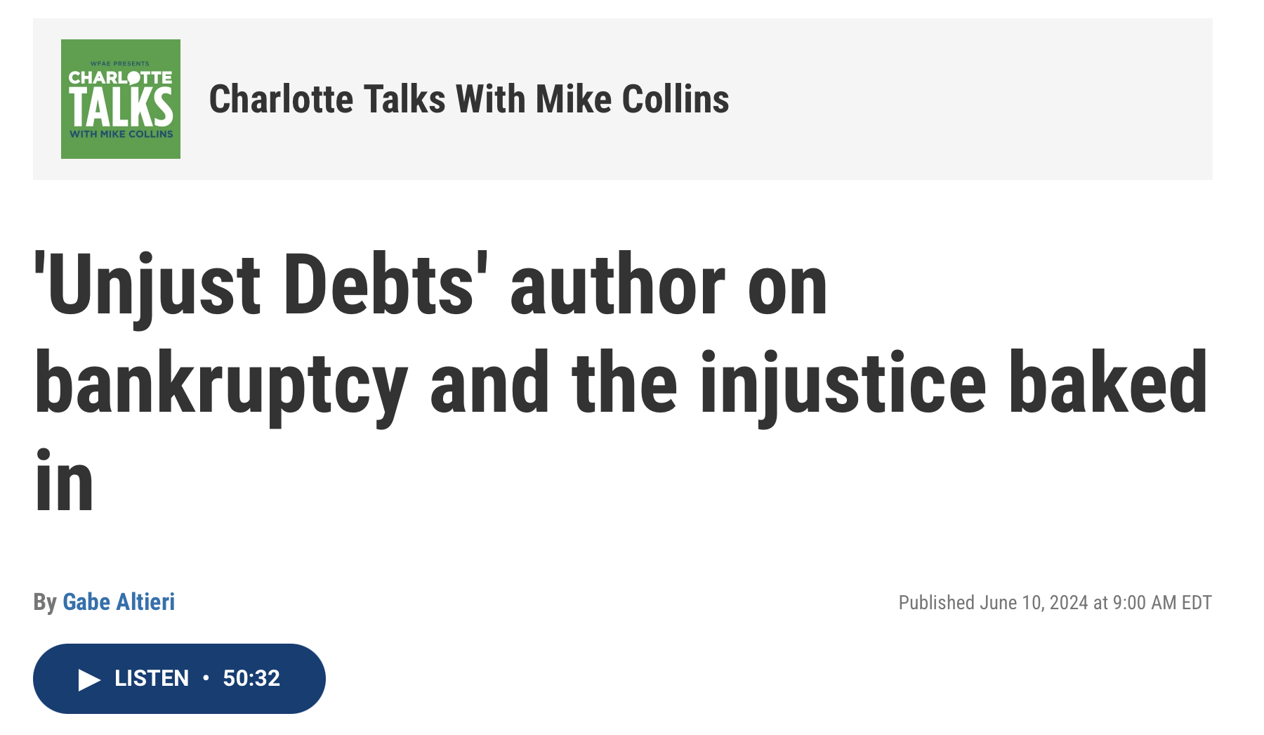 “Unjust Debts throws open the doors and windows to the bankruptcy system so readers can see for themselves how this law works and doesn’t work for the real people it so profoundly affects.”